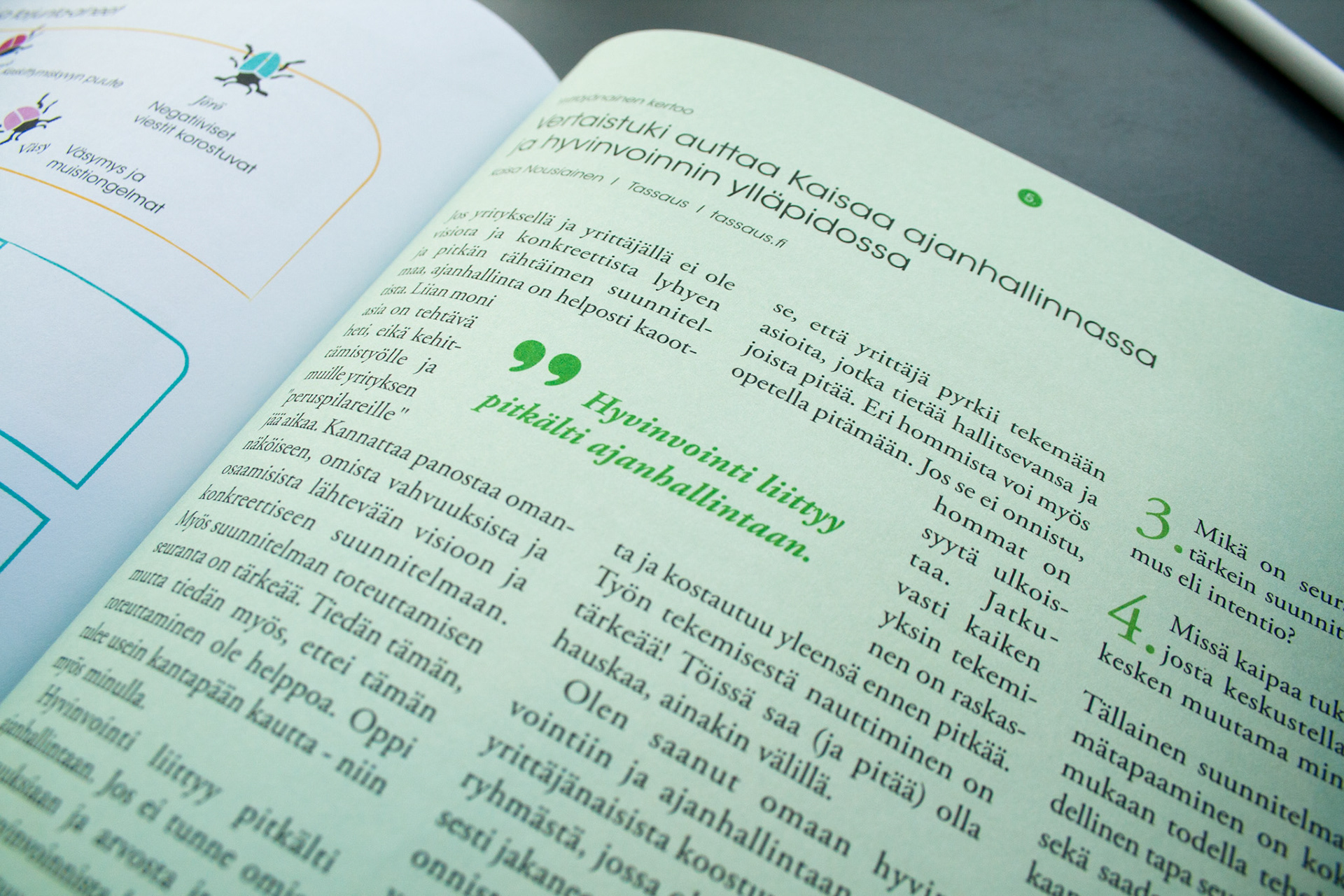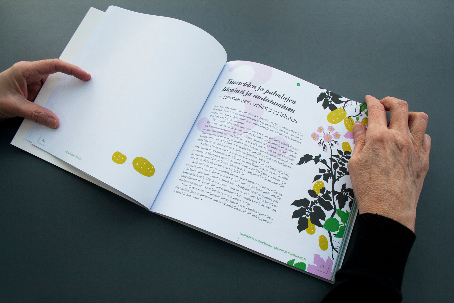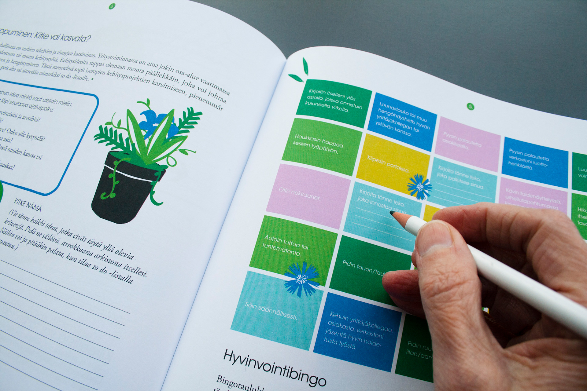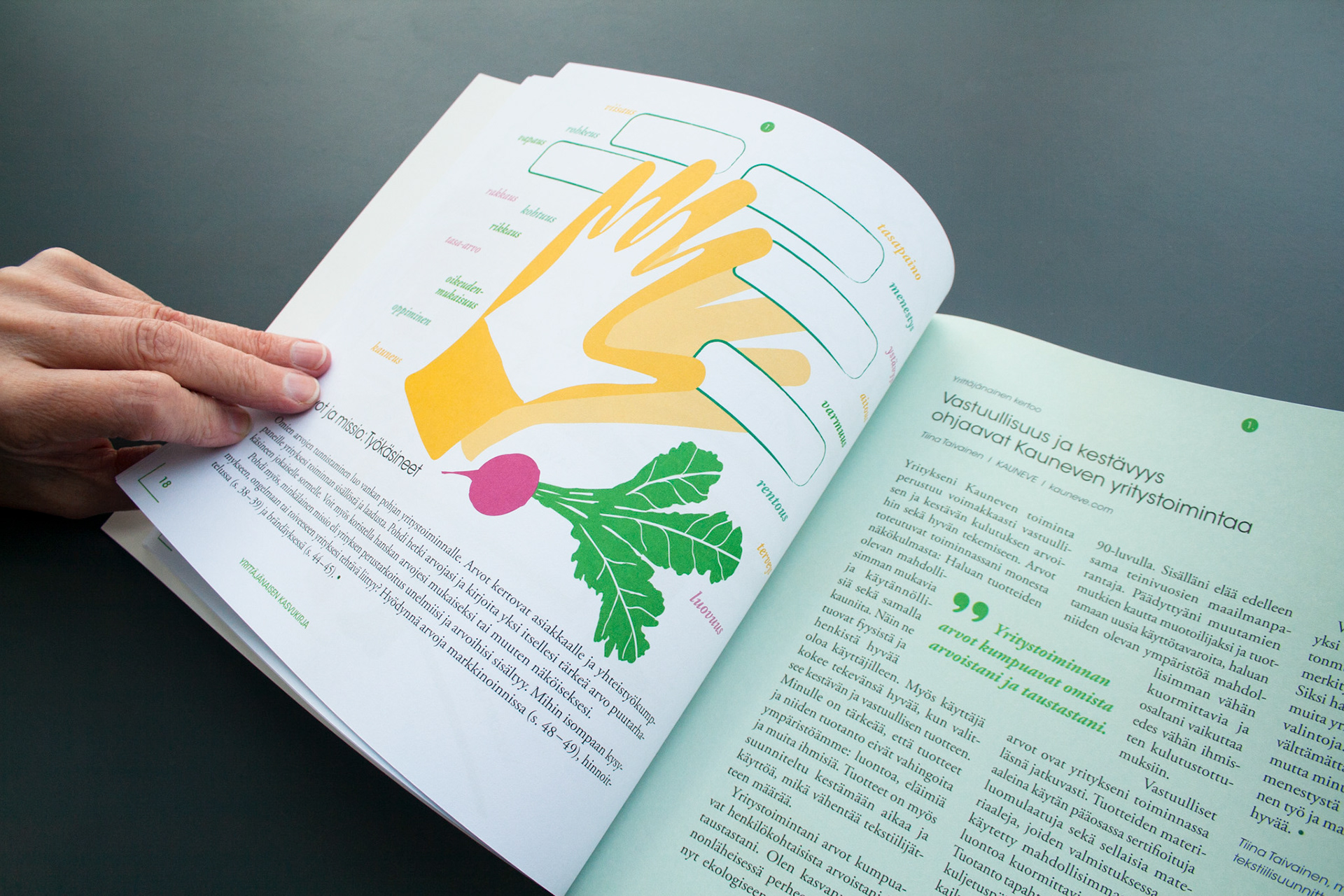 Toteutus: Uniikki visuaalinen ilme, taitto ja kuvitus, yrittäjänaisten opas- ja tehtäväkirjaan. Sisällöntuotanto: Metropolia Ammattikorkeakoulu ja Työterveyslaitos. Tilaaja: Oona – osaamista ja onnistumisen tukea yrittäjänaisille -ESR-hanke.
